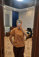 Очень хорошая базовая футболка. Цвет красивый. Заказала ещё в других цветах.
