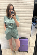 Мой любимый комбез. Стильный,удобный. В жару в нем комфортно,закажу еще пару цветов