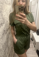 Очень крутой комбез!!! Единственное, чего мне в нем не хватает, это ткани полегче, чтобы в жару тоже можно было одевать. Цвет серо-зеленый красивый. Качество пошива и ткани отличное. Модель интересная, стильная вещь. Размер xs, на мой рост 158 верх с небольшим напуском получается.