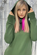 Хорошенькое платьице, крой прямой, яркое, капюшон интересный. Не определилась, может, было бы лучше взять размер меньше - это прямо свобооодное. Ог 91, от 66, об 92.