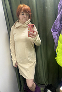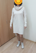 Очень понравилось платье! С кроссовками короткой курточкой - супер! И бежевым плащиком -вообще красота! Удобно, что воротник - он же шарф, он же шапка