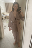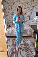 Костюм потрясающий. Приятная ткань, отлично сел по фигуре, суперудобный. Единственное, думала ткань будет немного плотнее, она прямо лёгкая, для лета будет очень хорошо, но это не испортило впечатление. Спасибо!