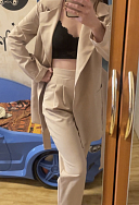 Очень крутой костюм. Ткань костюмная, без подклада и подплечников. На от 89, об 104 взяла размер L. В талии брюки сели очень туго не смотря на то, что сзади на поясе есть резинка, но ее очень мало. Пришлось немного расшивать.