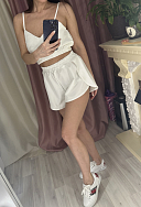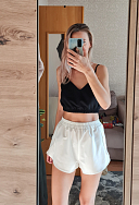 Прекрасная майка на лето, свободная, приятная телу ткань, не прилипает к телу, с шортами очень эффектный костюм получается.