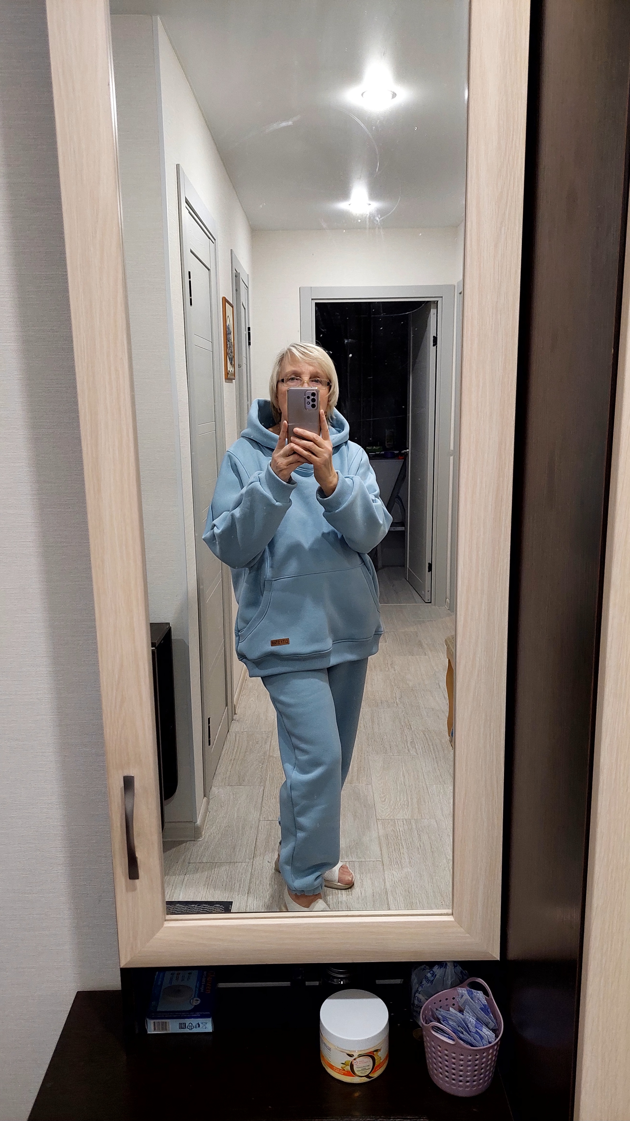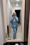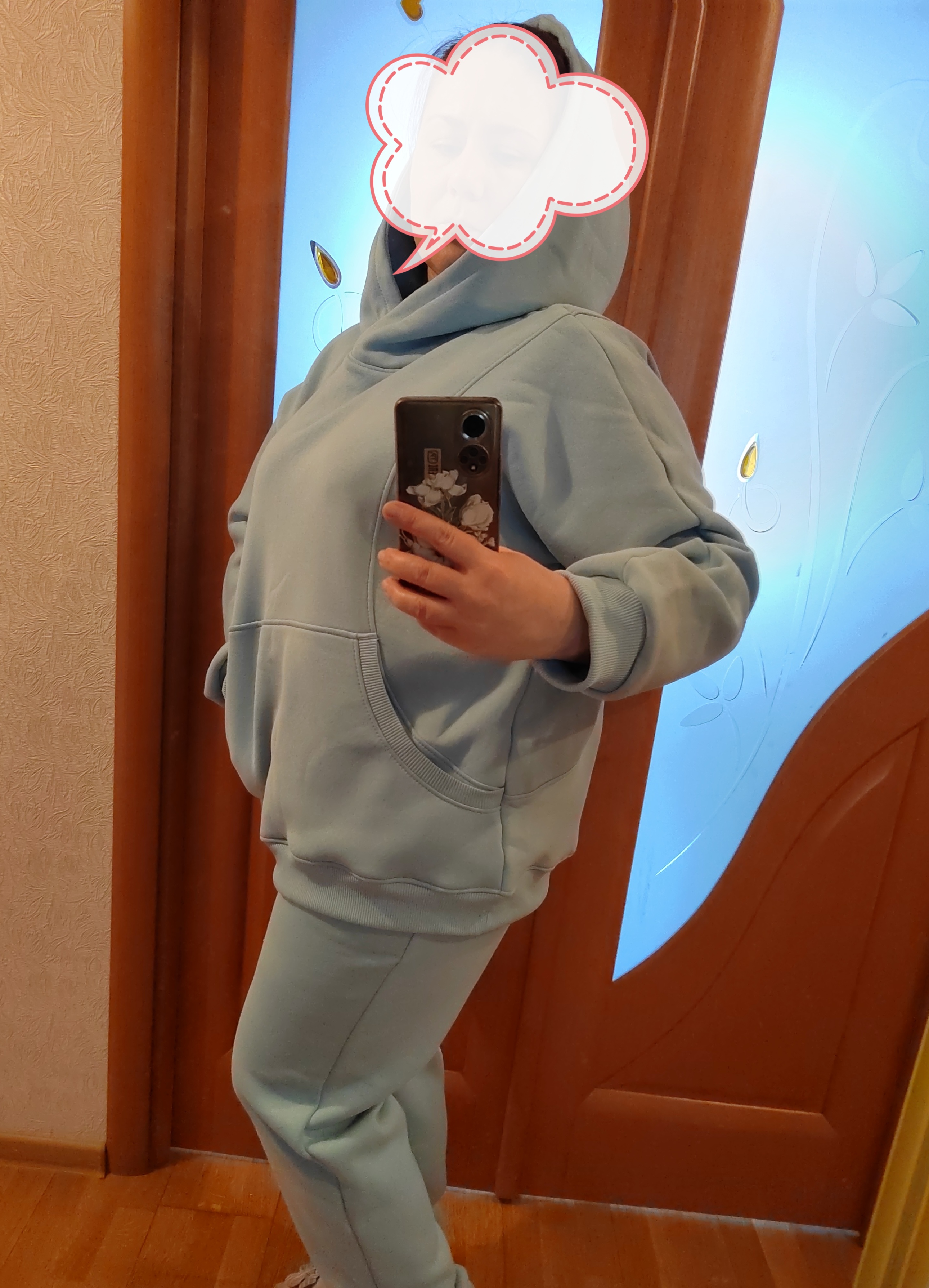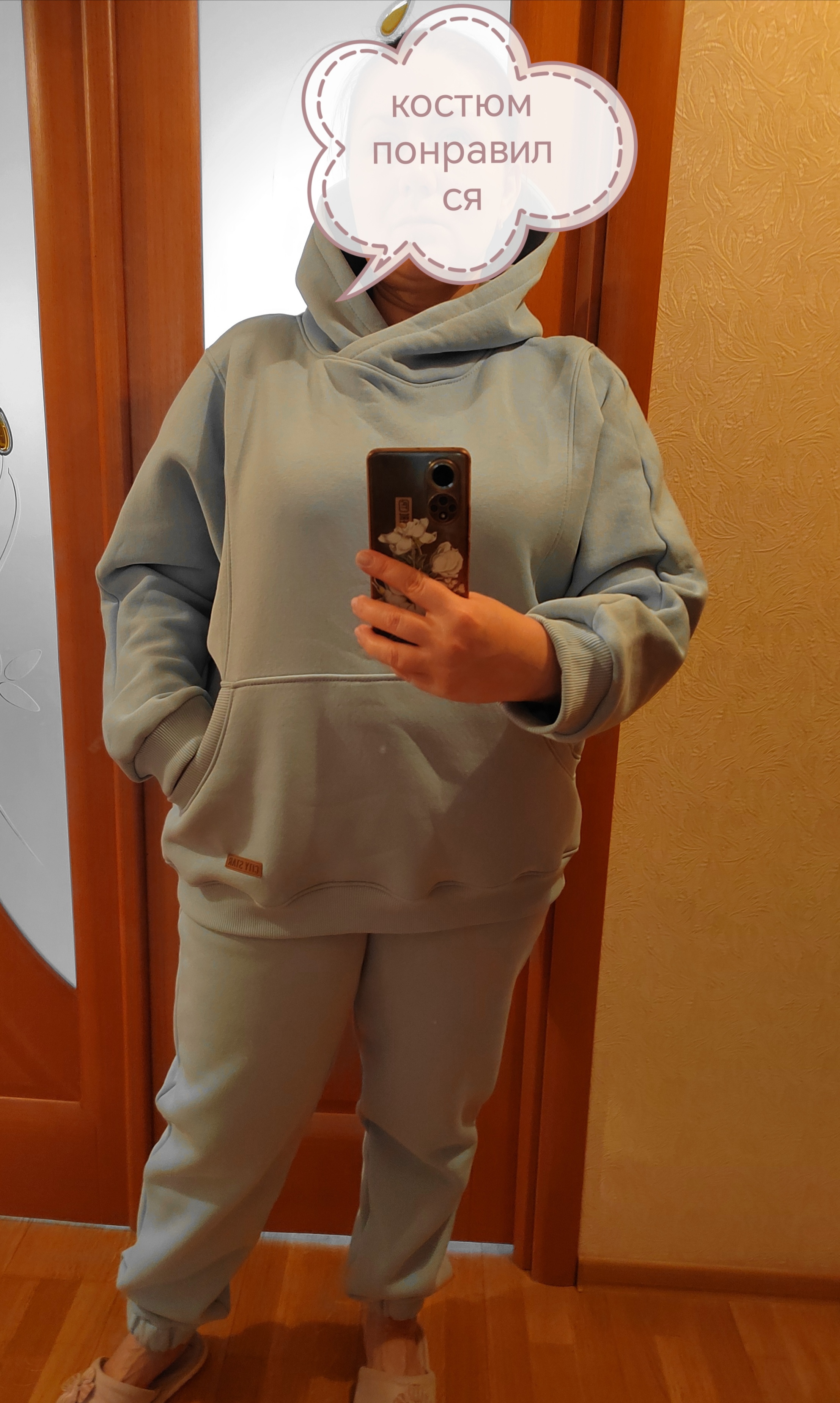 У меня большая разница между бедрами (114) и верхом, так что пришлось взять л. Худи, конечно, мегаоверсайз, но мне даже нравится. Уютно и мягко в этом костюме. Супер! И цвет отличный.