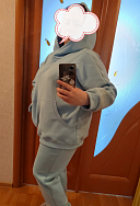 Супер костюмчик!! Сел идеально! На мои ог80, об102, взяла S. У брюк заниженая талия, что очень хорошо, не надо дотягивать до груди, на попе сидят как влитые...)) Мягкий, тёплый, цвет нежный пепельный. Худи оверсайз, но умеренный, не огромный, рукава не висят ниже кистей рук. Всё супер! Жду осень!))