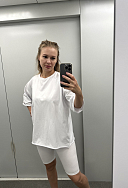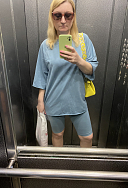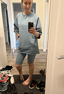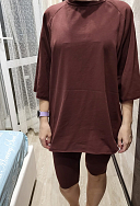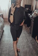 Хороший костюм. Часто ношу футболку и велосипедки по отдельности, одним словом - универсальная покупка. Советую брать четко размер в размер, так как футболка изначально лёгкий оверсайз