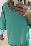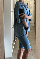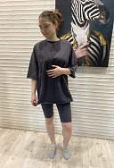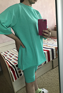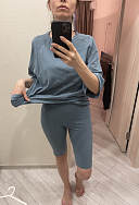 Очень стильный и удобный костюм. Идеален для прогулок и путешествий. Свободный крой футболки позволяет скрыть все недостатки. Леггинсы не давят. Цвет очень приятный. После стирки остаётся как новый.