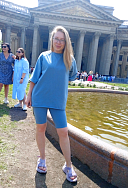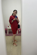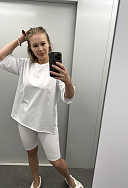 На 48 размер взяла XL, очень свободно, можно было и размер L взять. Футболка очень свободная, велосипедки выше колена, мой рост 175 см. Ткань и пошив как всегда на высоте!