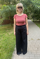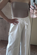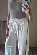 Обалденные брюки!!!!! Очень понравилось и качество ткани и сама модель брюк. Подойдут на высокий рост, я со своим ростом 158 см убирала длину не меньше 15 см, и при этом брюки в пол длиной) Очень комфортные, нравится как резинка сделана на талии. Ткань не просвечивает, даже тёмное белье через нее не видно.