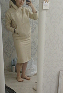 Не скажу что это мой любимый костюм. На фото только юбка - чаще всего ношу её вместе со свитера и. Юбка очень классная - длина, фасон. На мой вкус худи с этой юбкой не очень сочетаются, кажется что стили разные. Начес очень долго собирался в катышки, с другими костюмами такого не было! И ещё он мнётся намного больше чем другие костюмы, в том числе худи.