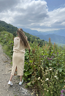 Очень тёплый и удобный костюм! Длина для юбки идеальная. На мне размер S, мои параметры 98 75 98, рост 164