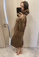 Замечательный костюм. Очень тёплый и комфортный. Сидит потрясающе. Заказала второй такой в чёрном цвете