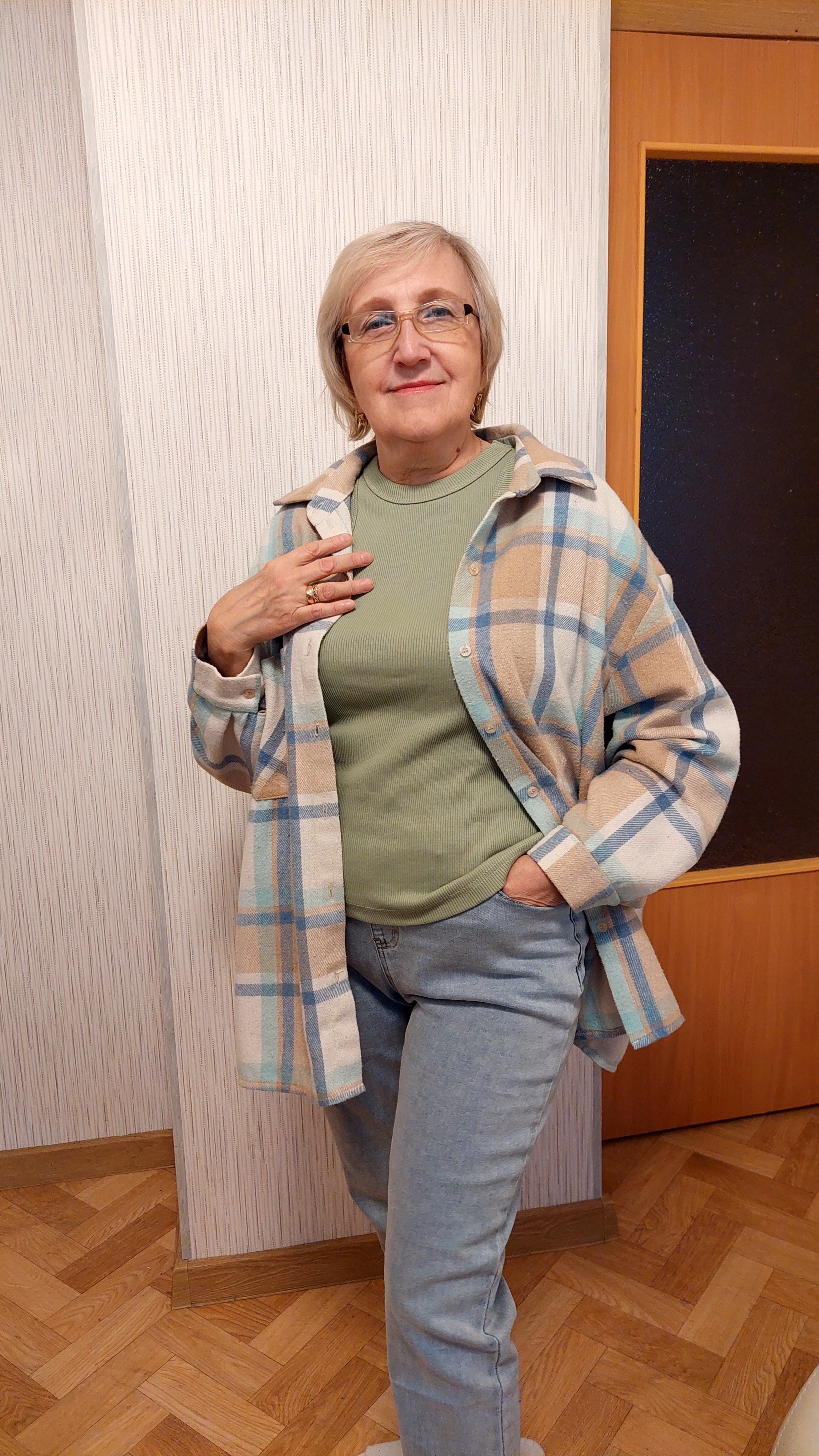 Майка есть в двух цветах, оливковый и по размеру и по цвету подошел больше синей (S). Плотная ткань, не просвечивает, на мне М, рост 167, ог 94 от 74.
