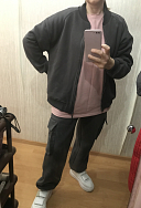 Рост- 162 см., ОГ - 112 см., ОТ - 108 см., ОБ - 112 см. Размер XL сел отлично! Бомбер скрадывает особенности фигуры, качество ткани хорошее, швы аккуратные, приятен к телу (очень приятен). Единственное неудобство, карманы по боковому шву бомбера, ОЧЕНЬ неудобны в использовании!!!