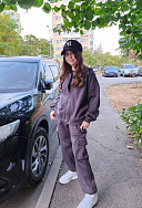На размер 44/46 и рост 164 толстовка и брюки Baggy.Я бы сказала, что немного полнит. Теплый, мягкий, но видимо, не моя модель