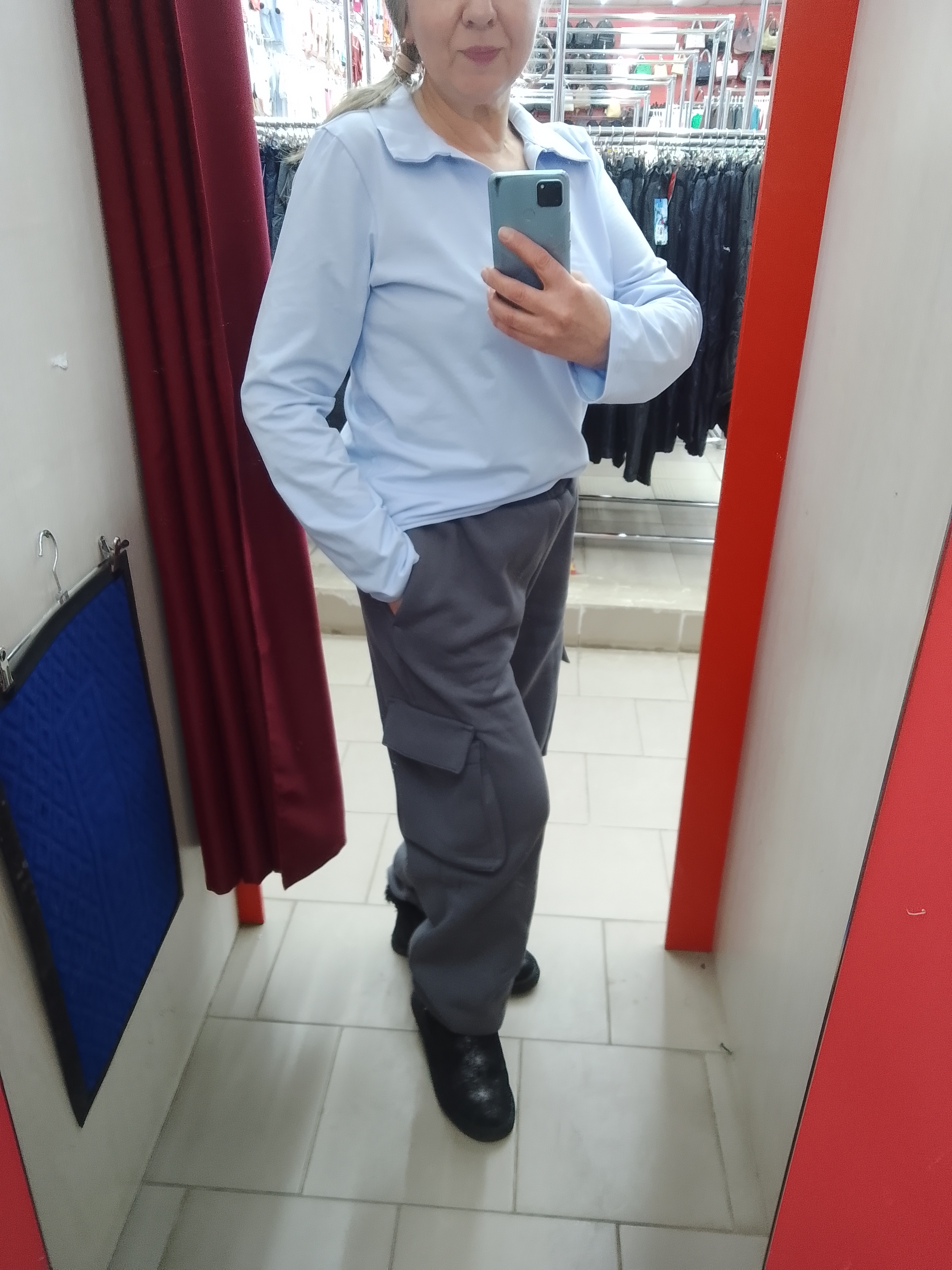 Очень приятные к телу штанишки, теплые и мягкие. На рост 168, ОТ 68 и ОБ 96 размер S. На фото вместе со свитшотом Weekend ( тоже графит, но немного отличается по интенсивности цвета).