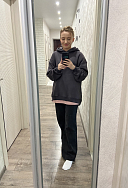 Хорошее худи, качественно сшитое, теплое. Оверсайз конкретный, на мне XS - S. Но цвет графит светлее, чем на картинках, я ожидала прямо насыщенного тёмно-серого
