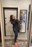 Худи очень нравится. Не выцветает после стирок, никаких катышков, ношу уже почти пол года. На 48 полный купила размер хs. Оверсайз. Свободненько сидит.