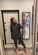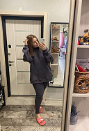 Отличный насыщенный графитовый цвет, теплый худи, ношу как с леггинсами, так и с широкими штанами Crime (которые на фото)