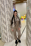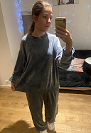 Заказала свитшот и штаны, получился стильный костюм. Мягкий и очень красивый. Спасибо большое