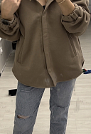 Рубашка супер! Оверсайз, прям объёмная тёплая , мне кажется тут немного не хватает молнии двухсторонней , клепки всё-таки не настолько удобно, карманы не подшиты и если на распашку то они болтаются совсем.