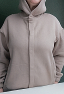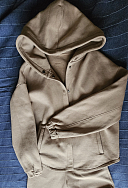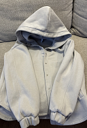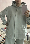 Хорошая кофта, очень нравится) необычная идея, не просто зипка или стандартный худи, а под рубашку, с кнопками вместо молнии, нравится как сидит по спинке) плюс нет кашкорсе, резинка со сборкой добавляет объема рукаву - выглядит интересно) единственное - я бы как-то закрепила карманы внутри, чтоб не болтались, но это не существенно) хотела бы такой худи и штаны к нему в черном цвете