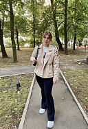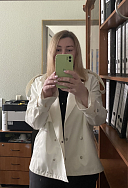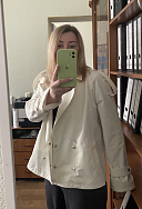 Лёгкий, стильный. Очень тонкий, подойдёт на прохладный вечер лета. Модель оверсайз, поэтому на свой 46 размер взяла ХS. Мои параметры 98 75 98, рост 164