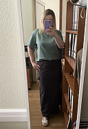 Юбка отличная. В меру плотная ткань, на прохладное лето и тёплую весну. На от72 об93 размер ,S подошёл. На рост 162 практически в пол. Думаю, и девушкам повыше будет хорошо
