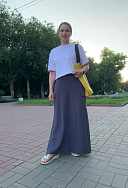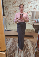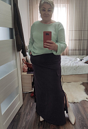 Юбка очень интересная, села хорошо. Единственное, на мой рост 152 пришлось немного укоротить. Но это ни капли её не испортило, и разрезы очень удобные. В общем модель актуальная, рекомендую к покупке. Качество ткани и пошива как всегда на высоте!