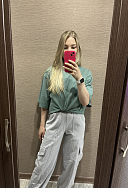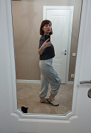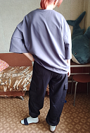 Брюки супер, тактильно приятная, комфортная двунитка петля. Ооочень нравится их с футболками оверсайз длинными носить, единственное что я сама промахнулась с размером, заказала на об102 и от 71 размер S , надо было конечно М или даже больше, что бы в бедрах свободно сидели, а так после список они стали впритык, по ногам то есть запас и хороший, но вот эта часть мне теперь не очень нравится, хочу теперь заказать ещё такие чёрные, но больше.