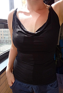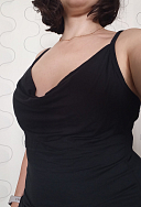 Маечка из мягкого трикотажа, очень приятная к телу, вырез очень выразительный, подчеркивает декольте. Мне понравилась, жаль что нет цветных. С удовольствием приобрела бы такую же но яркую.