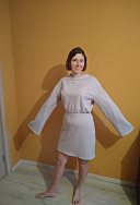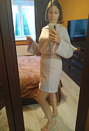 Мои параметры: ОГ 83, ОТ 65, ОБ 92. Рост 164. Взяла платье размера XS. Верх свободный, низ полуприлегающий. Единственное, укоротила рукава на 5 см: не люблю, когда не видно пальцев рук при опущенных вниз руках. Цвет модный, приятный.
