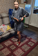 На модели смотрится намного лучше... Цвет красивый, ткань мягкая, но, видимо, не моё.