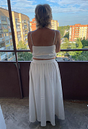 Замечательная юбка,в дополнение с топиком супер!!!Ткань плотная, не просвечивает, рост 177, длина в пол.