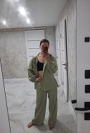 Получила рубашку и брюки. Ношу 46 размер, рост 157, взяла размер S по рекомендациям девочек, хотя до этого все платья и спортивный плюшевый костюм брала М. Это было верное решение, рубашка широкая, села идеально, в размере М я бы утонула. Ткань плотная, приятная. Очень довольна покупкой. 5 баллов!