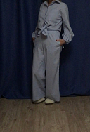 На фото дочь, рост 164, 89/59/89. Очень классно костюмом, рубашка удобная, стильная. Гладится легко ткань, цвет шикарный. Себе теперь тоже заказала такой комплект, жду