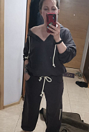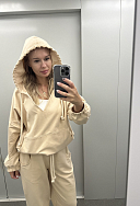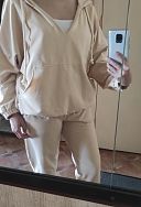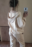 Худи взяла вместе с джоггерами. Костюм классный, мне очень нравится, самое главное в нём комфортно. В нём не останетесь без внимания)) Единственное быстро мнется.
