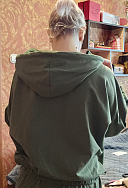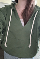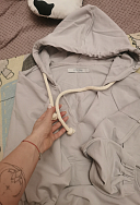 Очень классное худи, ношу со штанами, получился шикарный костюм! Удобный капюшон, вырез смотрится супер, необычно.