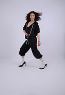 Интересный вырез, декоративные шнурки и регулируемая длина за счет резинки понижнему краю. Заказывала к штанам от space light, но, к сожалению, получилась заметная разница в цвете. На весну-осень и прохладную летнюю погоду будет отлично!