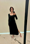 Хорошее платье на холодное время года. Ткань плотная. Заказывала на фигуру 89-70-96 как обычно М, но оказалось чуть большеватым, не стала перезаказывать, ушила. На рост 175см. Длина хорошая, рукава не короткие.