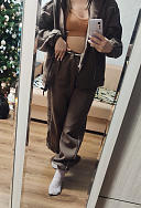 Костюм безумно понравился (размер XS), безумно приятное качество, цвет бесподобен. Из минусов: на брюках очень слабые регулировки, но если завязать на бантик - то в целом отлично