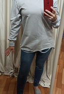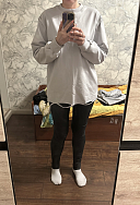 Понравился свитшот! Даже внизу лента, которая как бы оторвана, не смотрится как рваная одежда))) модель не утепленная, но и не тонкая, как раз сейчас носить. На мне размер xs, мои параметры 98 75 98, рост 164