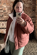 Куртка понравилась. На мой размер 46/48 заказала S (читала отзывы и советовалась с сотрудниками магазина) не хотела чтоб было очень оверсайс. Куртка теплая, верхняя ткань изделия довольно плотная. Не продувается ветром. Единственное, мне очень не хватает капюшона. В ветреную погоду очень спасал бы… Выгуливала ее этой зимой на море. Спасибо магазину за качество!